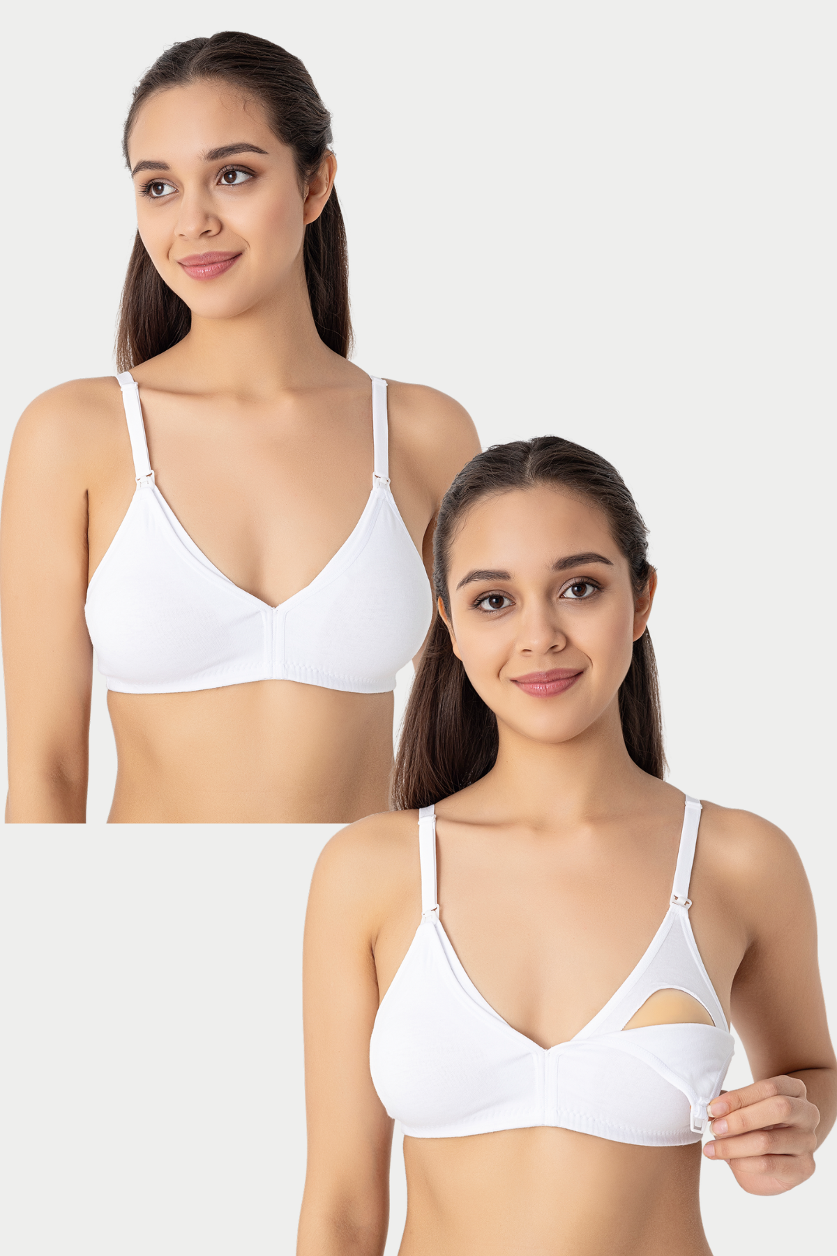 2'li Paket Beyaz Emzirme Sütyeni Pamuklu Likralı