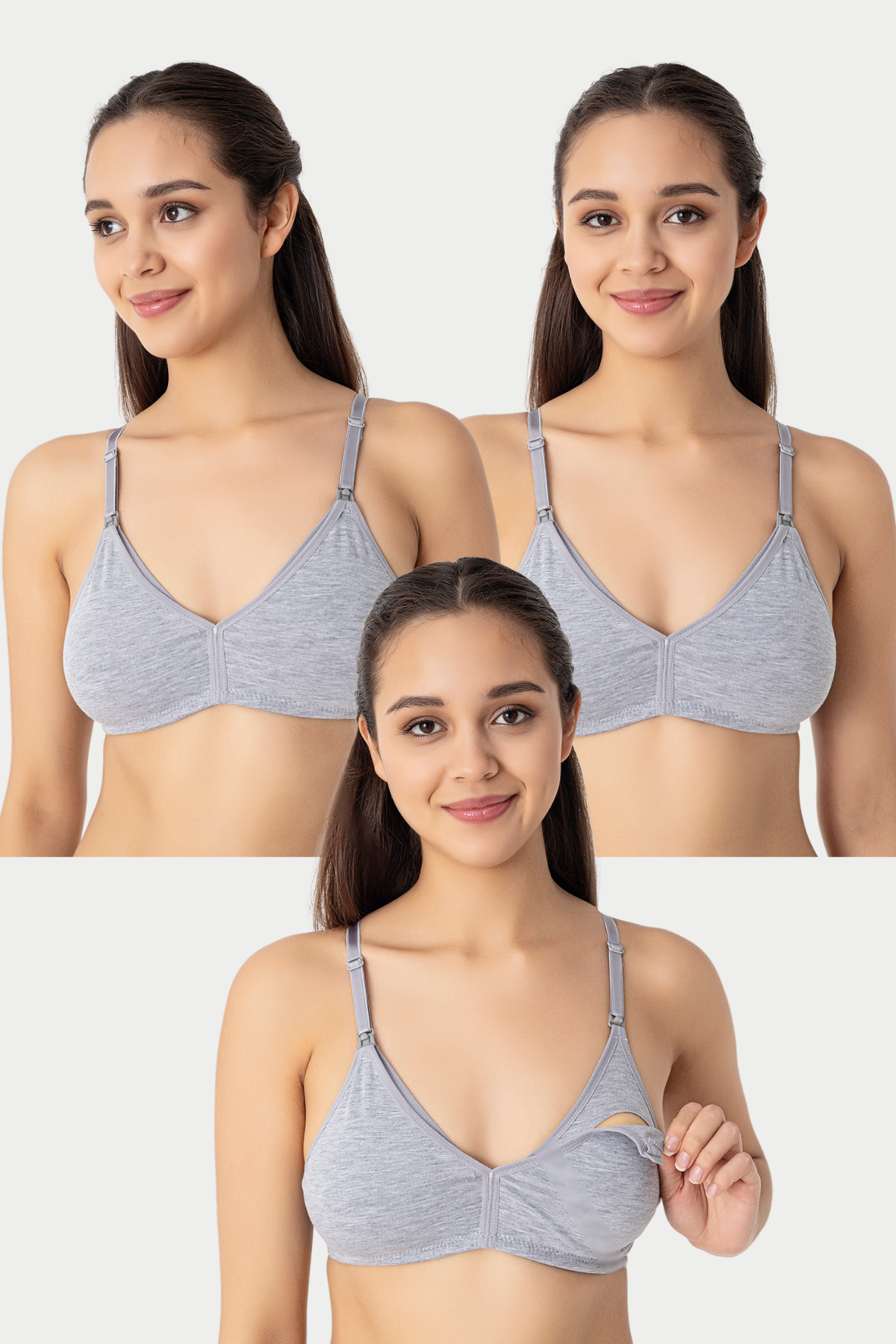 Gri Emzirme Sütyeni 3 Adet Pamuklu Likralı