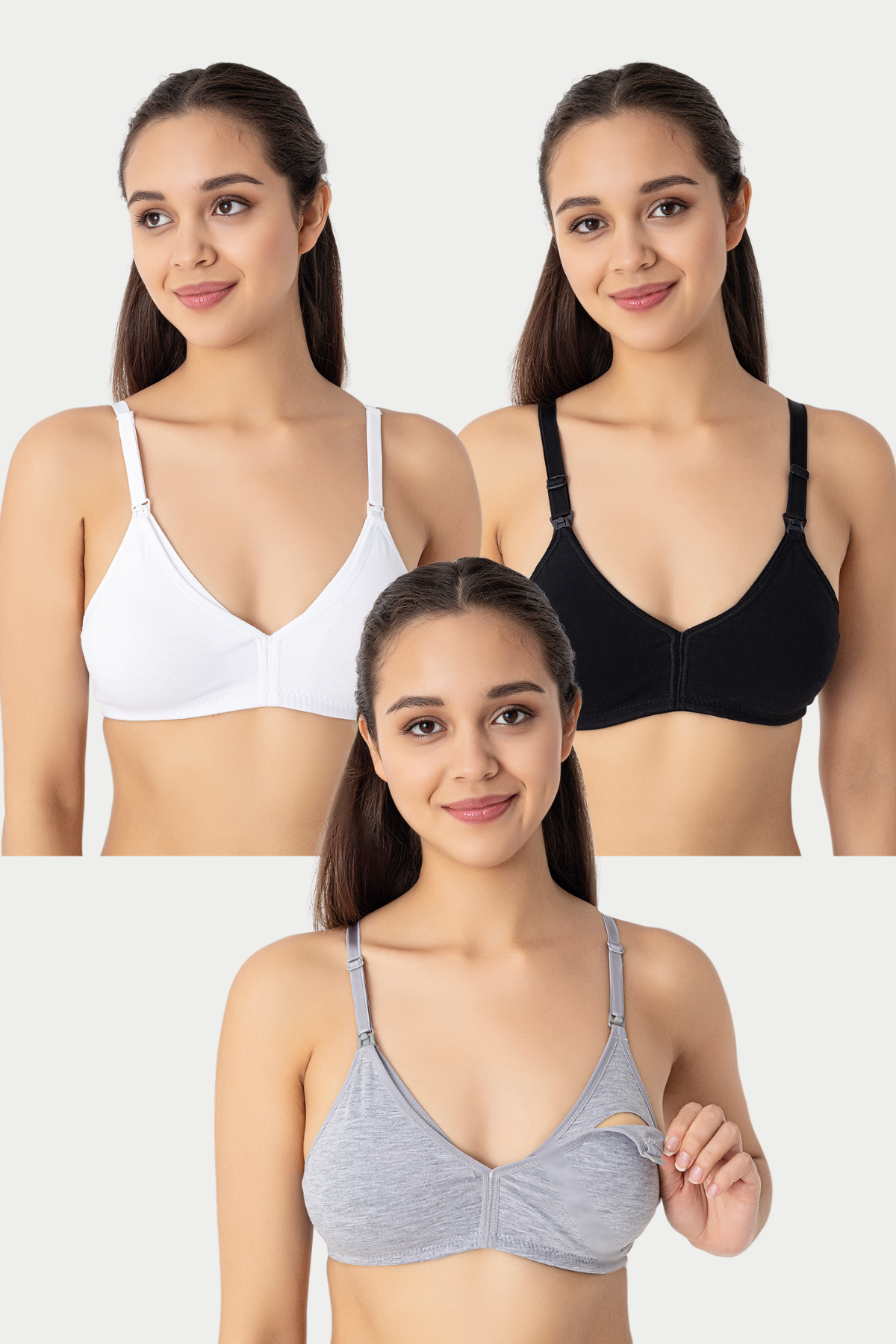 3 Adet Emzirme Sütyeni Pamuklu Beyaz - Siyah - Gri