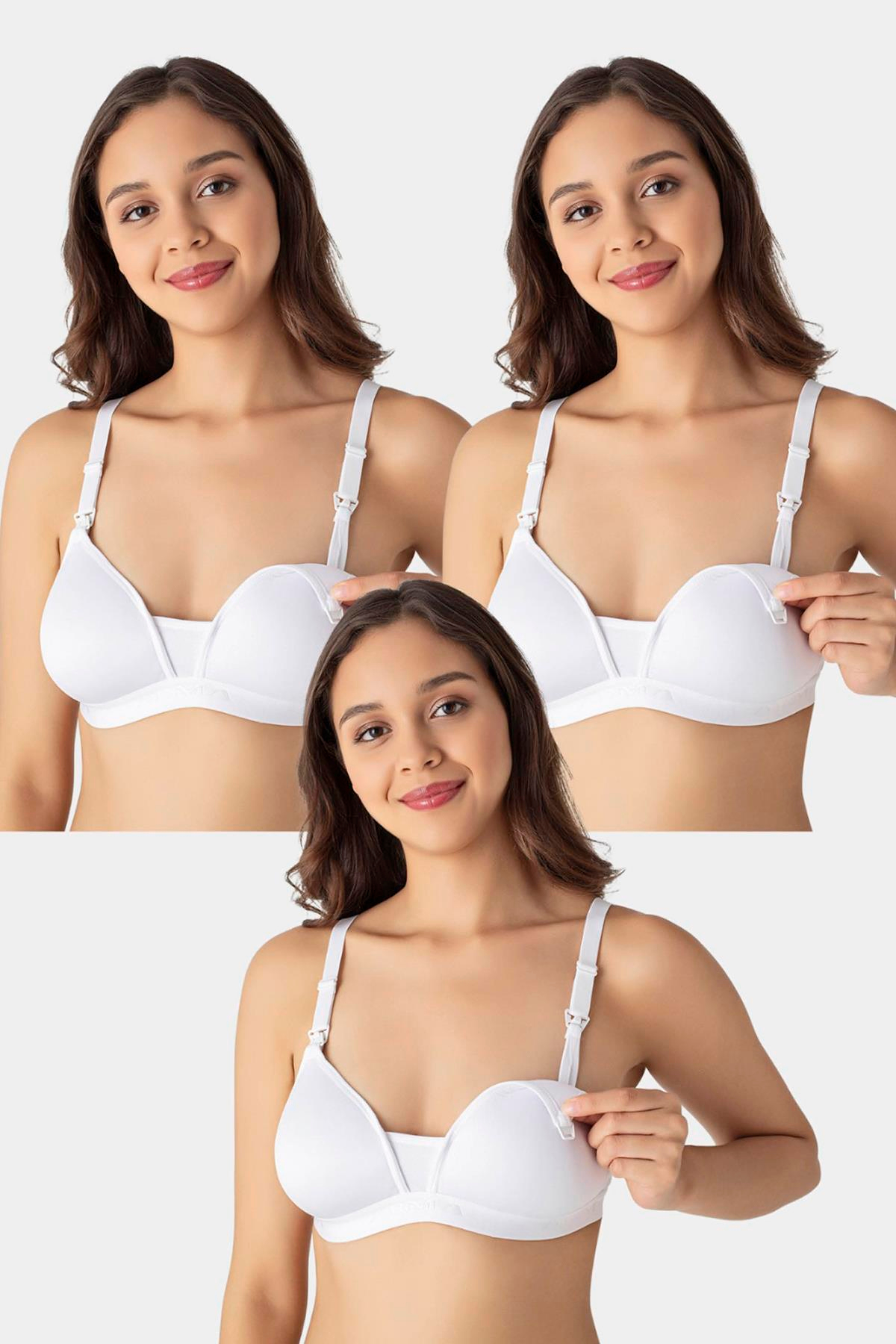 3'lü Paket Beyaz Kadın Balensiz Kaplı Emzirme Sütyeni Göğüs Ucu Görünmez Pamuklu Yumuşak Dokulu