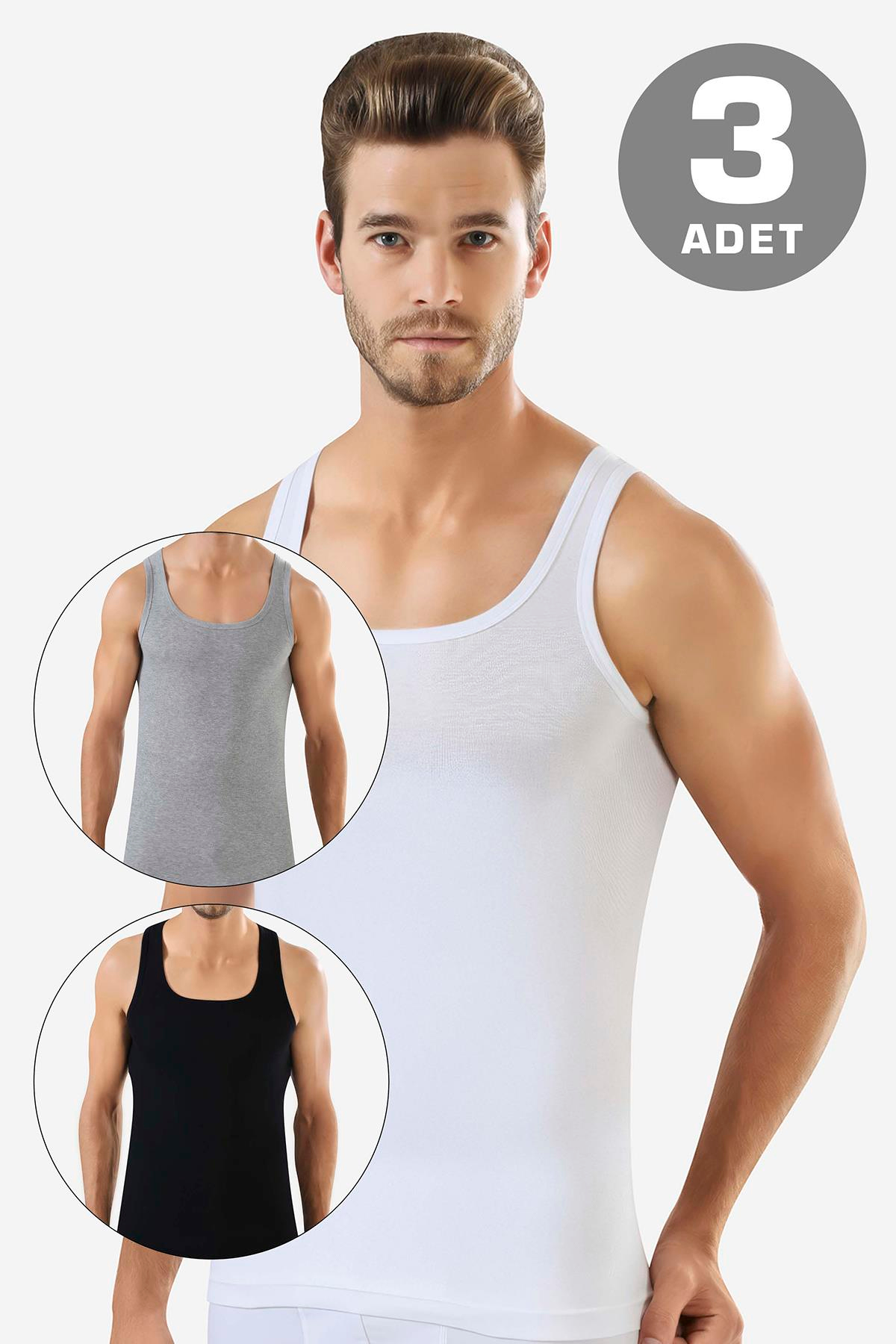 Erkek Renkli Ribana Atlet 3'lü Paket %100 Pamuklu (1007-3)