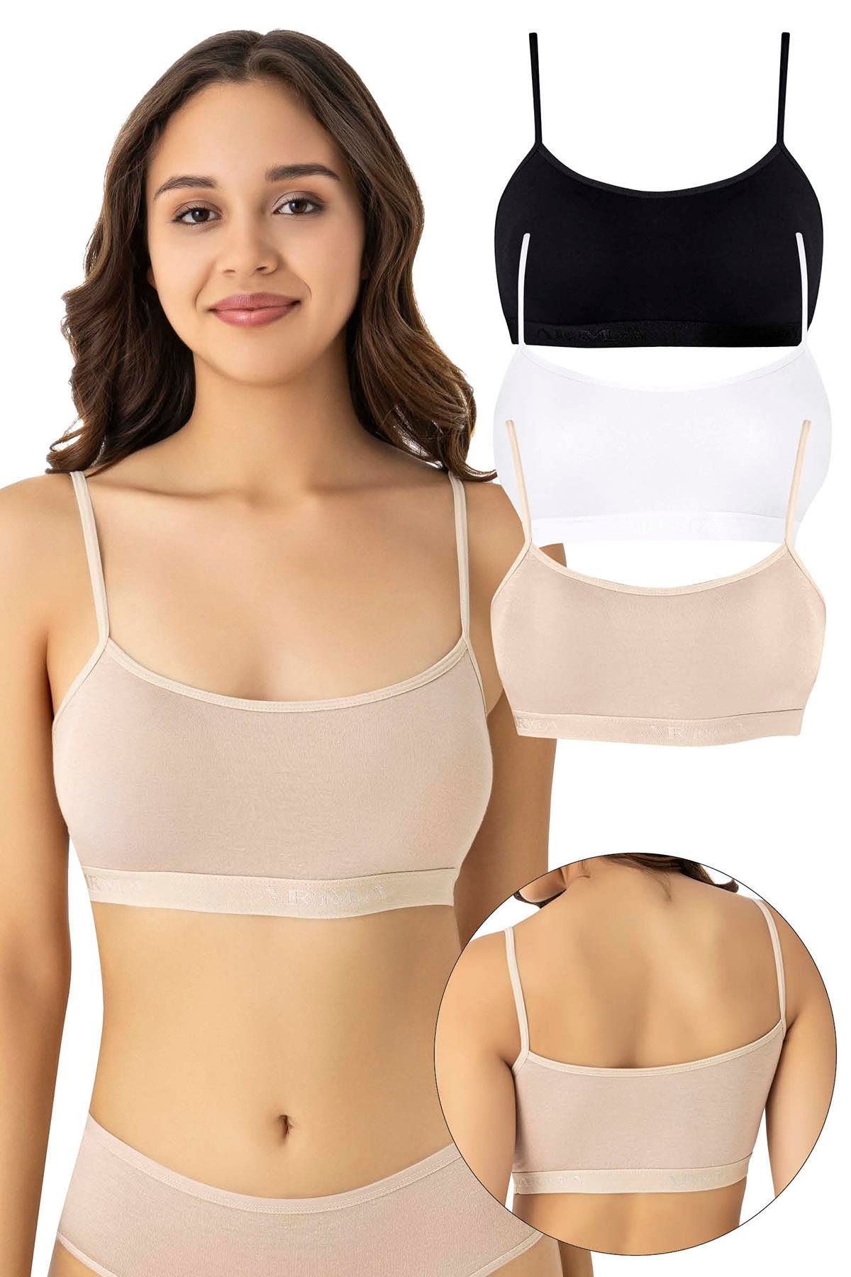 Kadın Bambu İp Askılı Çıkarılabilir Pedli Büstiyer Ten 3'lü Paket